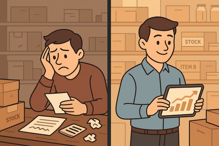 No necesitas grandes inversiones. Usa estanterías básicas, organiza con cajas o separadores, y digitaliza lo que puedas. Lo importante es construir un sistema que puedas escalar. Hoy usas una tablet, mañana una computadora con lector de código de barras. Lo importante es que el control empiece desde ya.